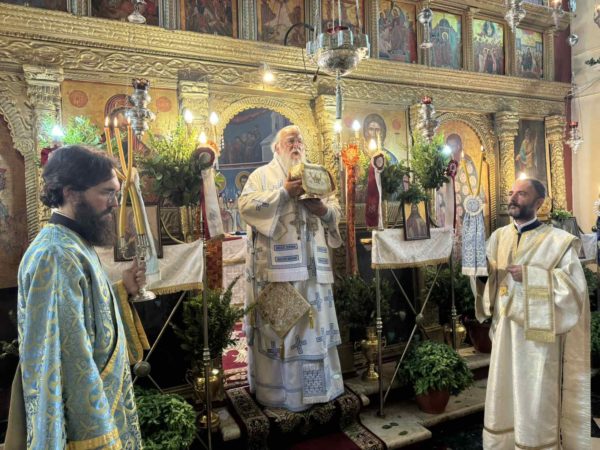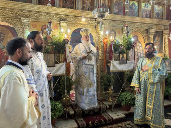 Ο Σεβασμιώτατος συλλειτούργησε με τον ιεροκήρυκα της ιεράς Μητροπόλεως αρχιμανδρίτη Σεραφείμ Λινοσπόρη και αρκετούς εφημερίους της νότιας Κέρκυρας.