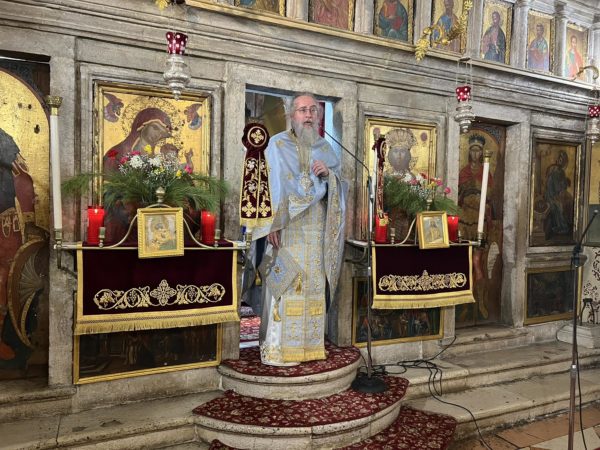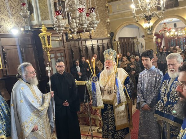 Ευχαρίστησε, τέλος, τους συλλειτουργήσαντας κληρικούς, τον Γενικό Αρχιερατικό Επίτροπο για τον πνευματικό του λόγο, τον χοράρχη κ. Δημήτριο Μεταλληνό και την χορωδία, ενώ ευχήθηκε στους παρόντες άρχοντες του τόπου, τον εορτάζοντα Περιφερειάρχη κ. Ιωάννη Τρεπεκλή, τον Αντιδήμαρχο κ. Βραδή και τον Πρόεδρο του Δικηγορικού Συλλόγου κ. Ιωάννη Κοντό, τα χρόνια πολλά για τα ονομαστήριά τους.