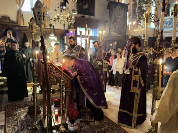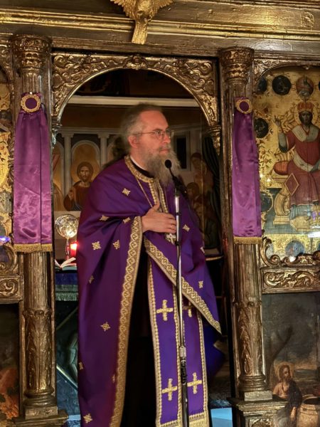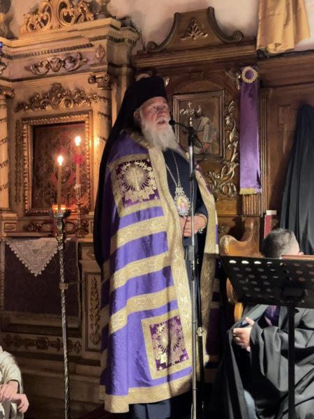 Ο Σεβασμιώτατος τόνισε και το ζήτημα της προσευχής. Σήμερα, ο κόσμος ασχολείται με άλλα θέματα. Καθημερινά οι άνθρωποι έπαυσαν να επικοινωνούν μεταξύ τους, ποθούν να έχουν κοινωνία με τον συνάνθρωπο, αλλά όταν δεν έχουν κοινωνία με τον Θεό, δεν μπορούν να συναντήσουν και τον συνάνθρωπο. Χρειάζεται συγκέντρωση του νοός, για να κατέβει στην καρδιά η σκέψη του ανθρώπου, να δει τον εσωτερικό του κόσμο, να λάβει χάρη και να νιώσει τη χαρά της παρουσίας του Θεού. Η χάρις του Θεού είναι άφατη. Ο άνθρωπος αδιαφόρησε για τον Θεό και έτσι χάνει την χαρά της κοινωνίας με τον συνάνθρωπο. Καθιστάμεθα ανέστιοι, δεν έχουμε εσωτερική ζεστασιά, βρισκόμαστε σε ένα σύμπλεγμα εσωτερικό το οποίο δεν μας επιτρέπει να δώσουμε απάντηση για του ποια είναι η ταυτότητα και το νόημα της ύπαρξής μας. Τα ανθρώπινα μέτρα και η επιστήμη δεν μπορούν να λύσουν τα εσώτερα προβλήματα, καθώς μόνο η οντολογική ένωση με τον Θεό, διά της μετανοίας, της καθάρσεως και της προσευχής, μπορεί να δώσει αληθινό περιεχόμενο στη ζωή μας.