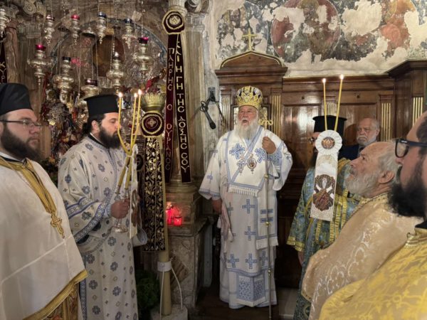 Ο Σεβασμιώτατος κάλεσε όλους τους ανθρώπους σε έξαρση προσευχής, να γονατίσουμε μπροστά στον Παντοκράτορα Κύριό μας, και εις το όρος της Μεταμορφώσεως που βρίσκεται και η μονή Παντοκράτορος, μεταξύ ουρανού και γης, να υψώσουμε ικετευτικά τα χέρια μας, καταδικάζοντας όλους εκείνους οι οποίοι θέλουν και αποζητούν την αποστασία του λαού του Θεού από την Εκκλησία Του.