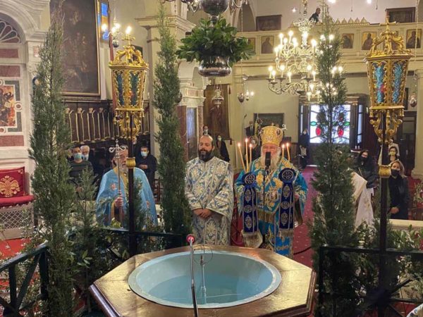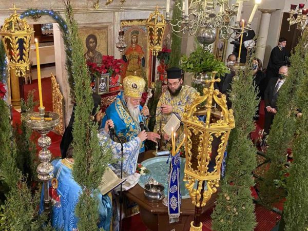 Στον Μητροπολιτικό Ναό Υπεραγίας Θεοτόκου Σπηλαιωτίσσης λειτούργησε χθες το πρωί ο Σεβασμιώτατος Μητροπολίτης Κερκύρας, Παξών και Διαποντίων Νήσων κ. Νεκτάριος, για την ημέρα των Θεοφανίων, ενώ τέλεσε και τον αγιασμό των υδάτων, εντός του ναού, με τήρηση των μέτρων προστασίας της δημόσιας υγείας.