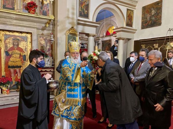 Οι εορταστικές εκδηλώσεις ξεκίνησαν με την τέλεση της πανηγυρικής θείας λειτουργίας και του Μεγάλου Αγιασμού σε όλες τις ενορίες του νησιού. Ο Μητροπολίτης κ. Νεκτάριος λειτούργησε στον Ιερό Μητροπολιτικό Ναό της Υ. Θ. Σπηλαιωτίσσης.