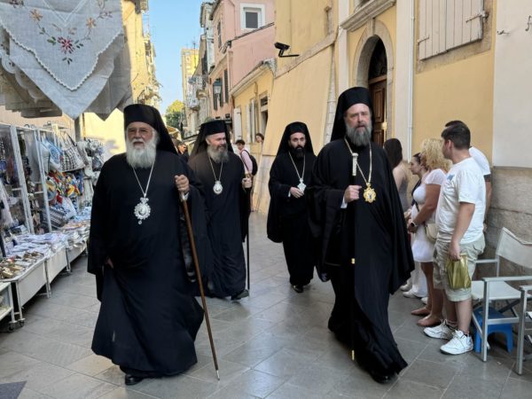 Τελέστηκε Μέγας Πανηγυρικός Εσπερινός χοροστατούντος του Σεβασμιωτάτου Μητροπολίτου Φλωρίνης, Πρεσπών και Εορδαίας κ. Ειρηναίου, και συγχοροστατούντων των Σεβασμιωτάτων Μητροπολιτών Ύδρας, Σπετών και Αιγίνης κ. Εφραίμ, Θεσσαλονίκης κ. Φιλοθέου, του Θεοφιλεστάτου Επισκόπου Κοτυαίου κ. Διονυσίου, βοηθού του Μητροπολίτου Ιταλίας, και του οικείου Ποιμενάρχου Σεβασμιωτάτου Μητροπολίτου Κερκύρας, Παξών και Διαποντίων Νήσων κ. Νεκταρίου.