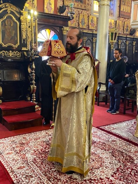 Στη θεία λειτουργία έψαλε ο βυζαντινός χορός υπό τον χοράρχη κ. Νικόλαο Μακρόπουλο, διευθυντή της εκκλησιαστικής σχολής ο Άγιος Αρσένιος της Ιεράς Μητροπόλεως. Επειδή ο Ιερός ναός είναι κτίσμα της ηπειρώτικης αδελφότητας, όταν δημιουργήθηκε κατά την περίοδο της υποδουλωμένης πατρίδας μας, έφεραν από την Ήπειρο και την παράδοση τους, που σε αντίθεση με την επικρατούσα ευρωπαϊκή και ντόπια μουσική, ο Ιερός ναός συνέχισε και συνεχίζει την παράδοση αυτή.