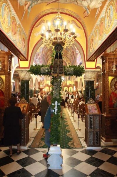 Ο Σεβ. κ. Νεκτάριος χοροστάτησε στον πανηγυρικό πολυαρχιερατικό Εσπερινό την παραμονή της εορτής Παρασκευή 13 Σεπτεμβρίου 2019, ενώ συμπροσευχήθηκαν και οι Σεβασμιώτατοι Μητροπολίτες Φιλαδελφείας (εκ του Πατριαρχείου Ιεροσολύμων) κ. Βενέδικτος, Γρεβενών κ. Δαβίδ και ο οικείος Μητροπολίτης κ. Παύλος.