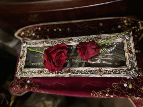 Μετά την ανάγνωση του ευαγγελίου προς τιμήν του Αγίου ακολούθησε, κατά το έθος, η έξοδος του ιερού Σκηνώματος του Αγίου από την λάρνακα, ώστε να τοποθετηθεί όρθιο «στη θύρα». Προς τιμήν του αγίου παιάνισε, όπως η παράδοση ορίζει, η Παλαιά Φιλαρμονική Κέρκυρας. Το προσκύνημα θα συνεχιστεί μέρα και νύχτα, καθώς ο ναός παραμένει ανοιχτός όλο το 24ωρο.