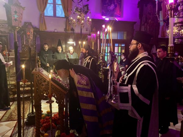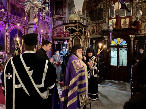 Το βράδυ της Μεγάλης Τρίτης ο Σεβασμιώτατος Μητροπολίτης Κερκύρας Παξών και Διαποντίων Νήσων κ. Νεκτάριος χοροστάτησε στην Ακολουθία του Νυμφίου στον Ιερό Ναό Παναγίας των Ξένων στην παλιά πόλη της Κέρκυρας. Το τροπάριο της Κασσιανής απέδωσε εξαίρετα η βυζαντινή χορωδία του ναού, υπό την διεύθυνση του πρωτοψάλτη και χοράρχη κ. Νικολάου Μακρόπουλου.