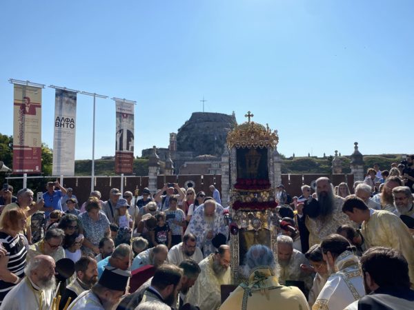 Στην λιτάνευση συμμετείχαν ο Σεβασμιώτατος Μητροπολίτης Νέας Ιωνίας και Φιλαδελφείας κ. Γαβριήλ, ο Θεοφιλέστατος Επίσκοπος Κοτυαίου κ. Διονύσιος και ο οικείος Ποιμενάρχης, Σεβασμιώτατος Μητροπολίτης Κερκύρας, Παξών και Διαποντίων Νήσων κ. Νεκτάριος.