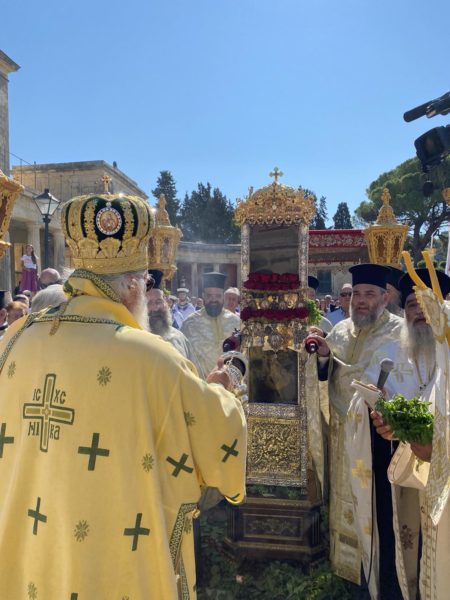 Με την καθιερωμένη μεγαλοπρέπεια της Kερκυραϊκής παράδοσης λιτανεύτηκε το πρωί της Παρασκευής 11 Αυγούστου 2023 το ιερό σκήνωμα του Αγίου και θαυματουργού Σπυρίδωνος, στο πλαίσιο των εκδηλώσεων για την ανάμνηση του θαύματος διάσωσης της Κέρκυρας από την πολιορκία των Οθωμανών Τούρκων στις 11 Αυγούστου 1716 χάρις στην θαυματουργή παρέμβαση του Αγίου Σπυρίδωνος.