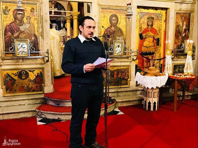 Εκ μέρους της εκπαιδευτικής κοινότητας ομίλησε για τους Τρεις Ιεράρχες ο κ. Ιωάννης Λάππας, θεολόγος – υποδιευθυντής του ΓΕΛ Αγρού.
