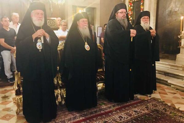 Το απόγευμα της Κυριακής 11 Αυγούστου 2019 τελέστηκε στο Ιερό Προσκύνημα του Αγίου και Θαυματουργού Σπυρίδωνος Πολυαρχιερατικός Εσπερινός, επί τη αναμνήσει  του θαύματος του Αγίου και της απαλλαγής της νήσου από τους Αγαρηνούς το έτος 1716, χοροστατούντος του Σεβασμιωτάτου Μητροπολίτου Σταγών και Μετεώρων κ. Θεοκλήτου και  συγχοροστατούντων των  Σεβασμιωτάτων Μητροπολιτών Σύρου, Τήνου, Άνδρου, Κέας, Μυκόνου, Μήλου, Σίφνου, Σερίφου, Κιμώλου, Κύθνου, Φολεγάνδρου και Σίκινου κ. Δωροθέου, Φιλίππων, Νεαπόλεως και Θάσου κ. Στεφάνου, Λαρίσης και Τυρνάβου κ. Ιερωνύμου και του επιχώριου Μητροπολίτου Κερκύρας, Παξών και Διαποντίων Νήσων κ. Νεκταρίου.