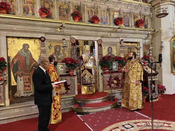 Πριν την Θεία Κοινωνία διαβάστηκε το μήνυμα του Σεβασμιωτάτου κ. Νεκταρίου προς κλήρο και λαό, το οποίο έχει ως εξής: «Ὁ Κυβερνήτης τοῦ κόσμου δέν ἀνακαινίζει τόν ἄνθρωπο, παράδοξα, μόνο μέ κάποια ἐξωτερική ἐνέργειά Του, ἀλλά τόν προσλαμβάνει καί τόν ἀγκαλιάζει. Καί δέν ἀνορθώνει μόνο καί ξαναστεριώνει τήν ἀνθρώπινη φύση, ἀλλά τήν περιβάλλεται μέ τρόπο ἀπερίγραπτο καί ἑνώνεται καί ταυτίζεται μαζί της . καί γεννιέται συγχρόνως Θεός καί ἄνθρωπος ἀπό γυναίκα βέβαια, ὥστε νά πάρει τήν φύση πού ὁ Ἰδιος ἔπλασε κι ὁ πονηρός μέ τήν συμβουλή του τοῦ ἔκλεψε» (Ἁγίου Γρηγορίου τοῦ Παλαμᾶ, «Ὁμιλία περί τῆς κατά σάρκα τοῦ Κυρίου ἡμῶν Ἰησοῦ Χριστοῦ οἰκονομίας»)