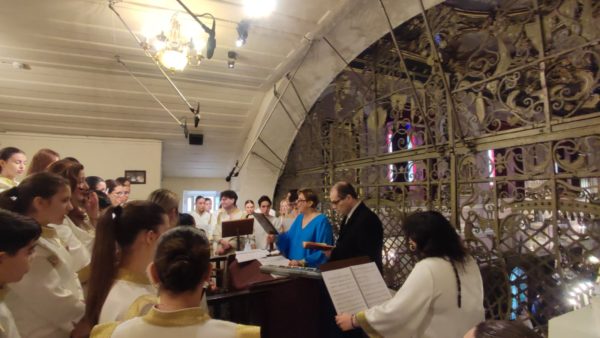 Στην θεία λειτουργία έψαλλε η Παιδική Χορωδία «ΑΓΙΟΣ ΣΠΥΡΙΔΩΝ», υπό τη διεύθυνση της χοράρχου κ. Χριστίνας Καλλιαρίδου, η οποία απέδωσε ένα σπουδαίο έργο του μεγάλου μουσικοσυνθέτη μας Μίκη Θεοδωράκη, που είναι τα μελοποιημένα από τον ίδιο ψαλτικά μέρη της ορθόδοξης θείας λειτουργίας, σε μια εξαιρετικά κατανυκτική ατμόσφαιρα.