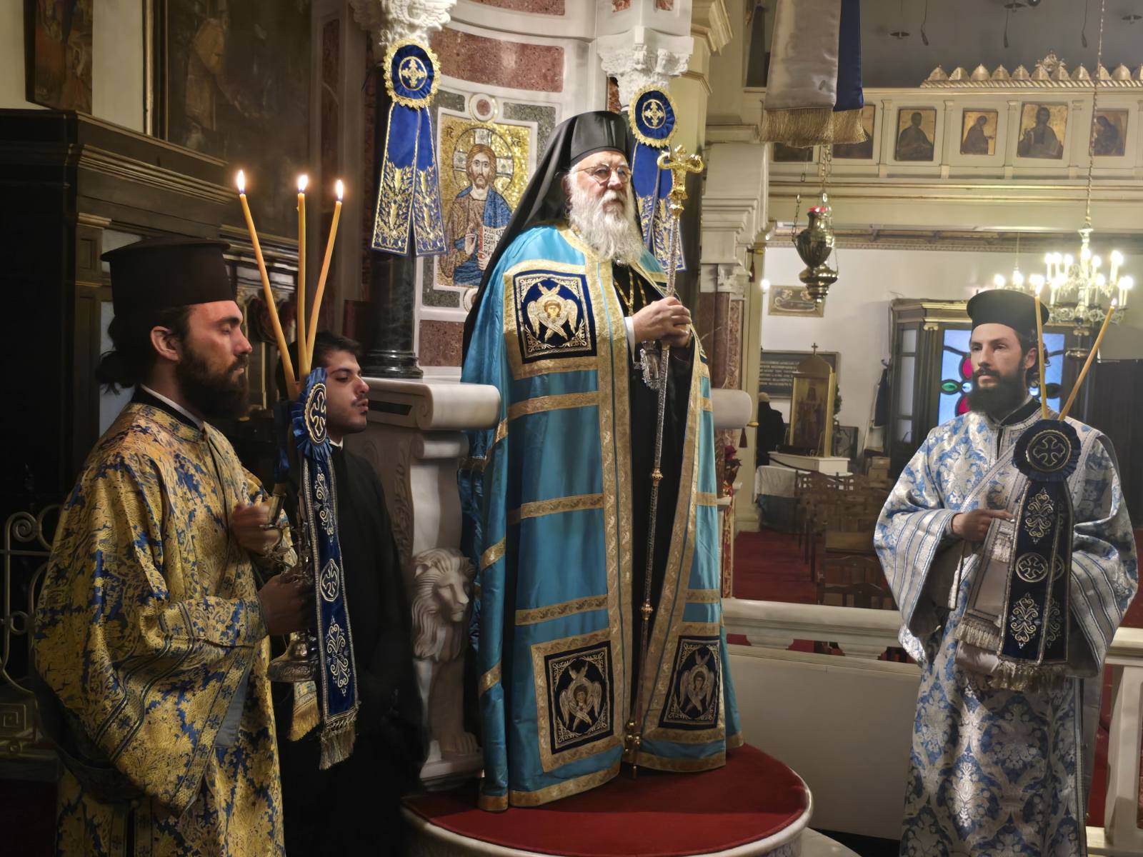 Οι εορταστικές εκδηλώσεις ξεκίνησαν με την τέλεση της πανηγυρικής θείας λειτουργίας και του Μεγάλου Αγιασμού σε όλες τις ενορίες του νησιού. Ο Μητροπολίτης κ. Νεκτάριος λειτούργησε στον Ιερό Μητροπολιτικό Ναό της Υ. Θ. Σπηλαιωτίσσης.