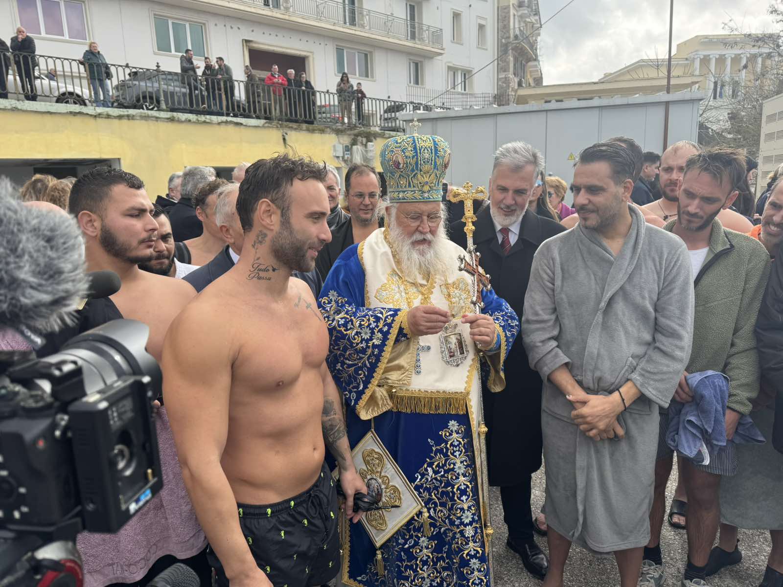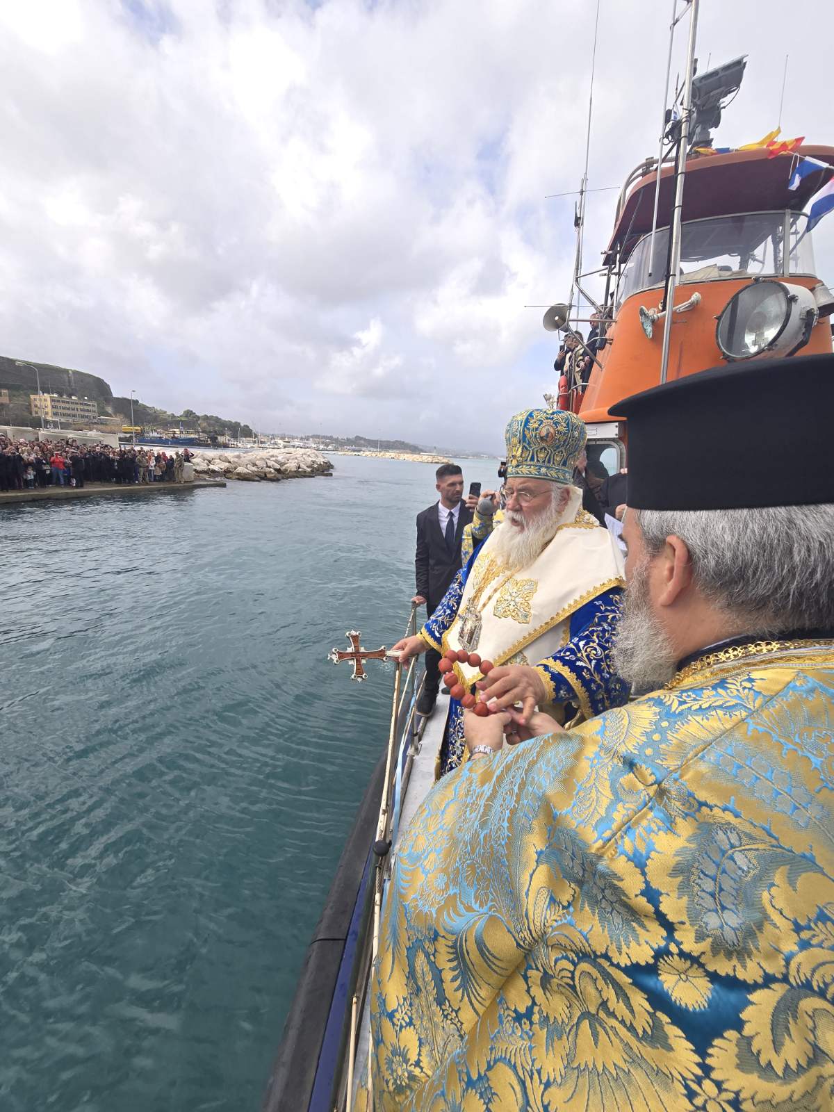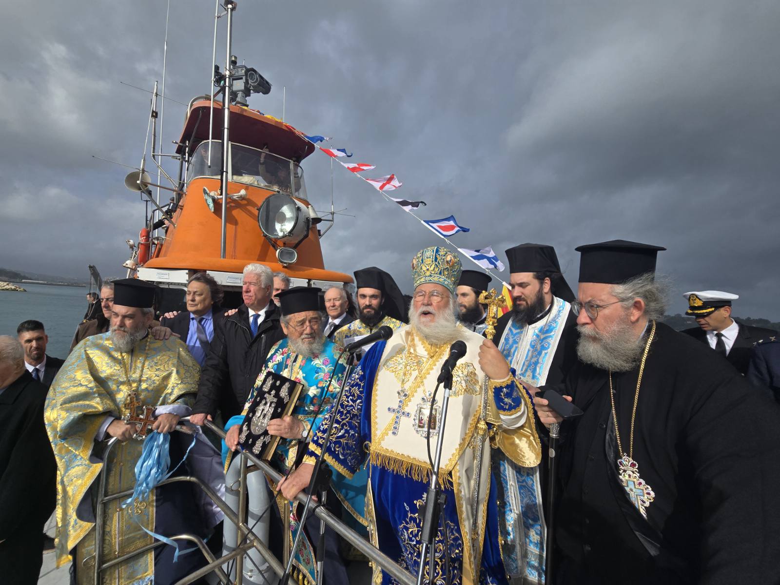Στην συνέχεια, παρά τις δυσμενείς καιρικές συνθήκες, έγιναν στο παλιό λιμάνι της Κέρκυρας η κατάδυση του τιμίου Σταυρού και ο αγιασμός των υδάτων, με την παρουσία των αρχών του νησιού, πάνω σε πλοιάριο του Λιμενικού. Πολλοί κολυμβητές έπεσαν στη θάλασσα για να πιάσουν τον σταυρό, ενώ ο κ. Νεκτάριος προσέφερε ως ευλογία έναν μικρό χρυσό σταυρό στον Χρήστο Σούζο, ο οποίος για τρίτη φορά έπιασε τον σταυρό.