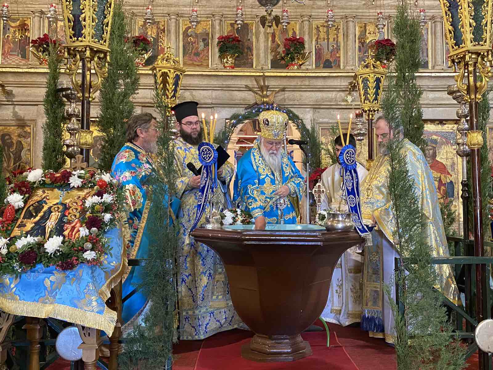 Έψαλλε μελωδικότατα η ωραία χορωδία του μητροπολιτικού ναού, ο οποίος ήταν κατάμεστος από τους ευλαβείς χριστιανούς, και κατά την Θεία Λειτουργία ανεγνώσθη το μήνυμα του Σεβασμιωτάτου επι τη εορτή της θείας επιφανείας.