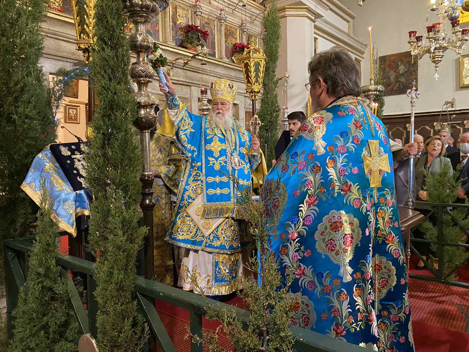 Στο τέλος του Μεγάλου Αγιασμού, ο Σεβασμιώτατος ευχήθηκε εγκαρδίως τόσο στις αρχές του τόπου όσο και στο λαό του θεού, να δεχθούμε τον φωτισμό του Αγίου Πνεύματος στη ζωή μας, και να γίνουμε τέκνα φωτόμορφα της εκκλησίας έτσι όπως επιτάσσει το ελληνορθόδοξον ήθος της πατρίδας μας. Ευχήθηκε ιδιαιτέρως Χρόνια Πολλά στους εορτάζοντες και εορτάζουσες.