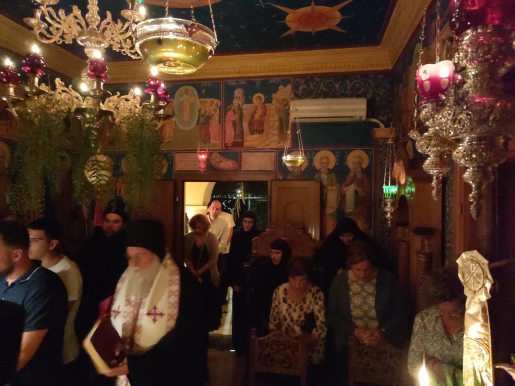 Η ολονύκτιος αγρυπνία άρχισε περί την ογδόη εσπερινή και απόλυσε περί την τρίτη και τριάντα πρωινή ώρα. Ο Σεβασμιώτατος συλλειτούργησε μετά του πανοσιολογιωτάτου αρχιμανδρίτου π. Χριστοδούλου Τριαντάφυλλου, ιεροκήρυκος του ιερού προσκυνήματος Αγίου Σπυρίδωνος, καθηγούμενου της Ιεράς Μονής Στρατιάς και αδελφού της Ιεράς Μονής, μετά του πρεσβυτέρου Βασιλείου Γάτα, του πρεσβυτέρου Ζαχαρίου Κοβαλτσουκ και του διακόνου του π. Ανδρέα Γκιόκα.