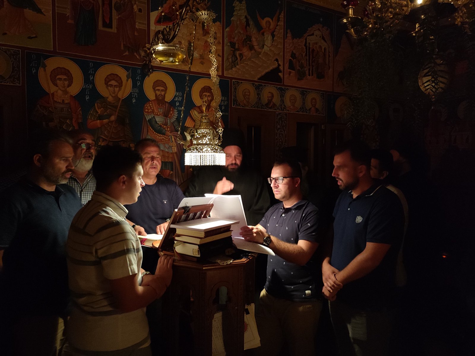 Έψαλλαν στην αγρυπνία, εκκλησιαστικός χορός με επικεφαλής τον καλλιτεχνικό διευθυντή της σχολής εκκλησιαστικής μουσικής της Ιεράς Μητροπόλεως κ. Νικόλαος Μακρόπουλος μετά καθηγητών και μαθητών της σχολής. Ομοίως μερικοί πατέρες της Ιεράς Μονής.