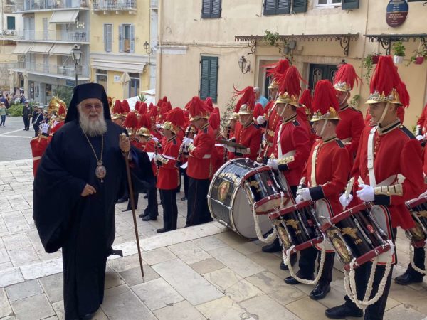 Στη συνέχεια ο Σεβασμιώτατος παρακολούθησε και την παρέλαση στο κέντρο της Παλαιάς Πόλης, στην οποία συμμετείχαν οι Φιλαρμονικές ΚΑΠΟΔΙΣΤΡΙΑΣ, ΣΠΥΡΟΣ ΣΑΜΑΡΑΣ και ΜΑΝΤΖΑΡΟΣ.