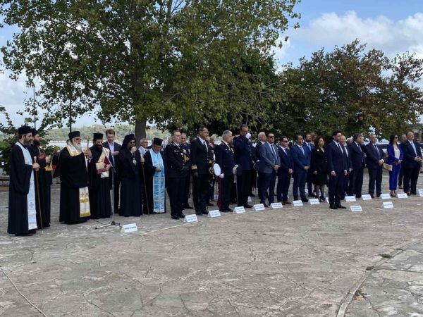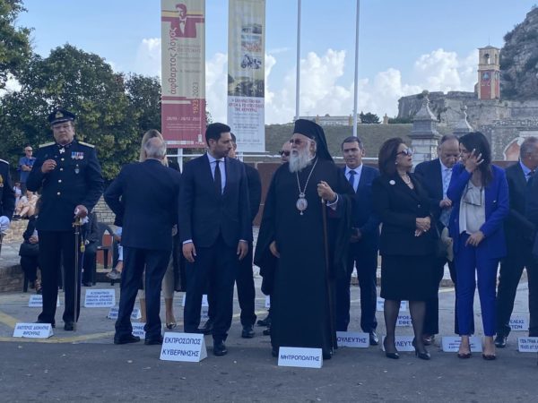 Ακολούθησε επιμνημόσυνη δέηση από τον Σεβασμιώτατο Μητροπολίτη Κερκύρας κ. Νεκτάριο και κατάθεση στεφάνων στο Ηρώο.