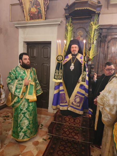 Απευθυνόμενος στους πιστούς ο Επίσκοπος Κοτυαίου, βοηθός του Μητροπολίτη Ιταλίας κ. Πολυκάρπου, τόνισε ότι την Κυριακή των Βαΐων χρειάζεται να ξαναδούμε ποιος είναι ο Χριστός της Εκκλησίας. Ο λαός πίστεψε ότι ο Χριστός ήταν ο βασιλεύς του Ισραήλ. Τον υποδέχεται θριαμβευτικά, αλλά τέσσερις ημέρες αργότερα θα Τον οδηγήσουν στον Σταυρό. Οι Ιουδαίοι είχαν δική τους αντίληψη για τον Μεσσία. Θεωρούσαν ότι θα ήταν απελευθερωτής του λαού από τους Ρωμαίους, ενώ Εκείνος ήρθε για να ελευθερώσει τον κόσμο από την αμαρτία. Τι εικόνα έχουμε εμείς για τον Χριστό; Αυτή την ερώτηση τη βάζουμε στον εαυτό μας, αλλά είναι λανθασμένη ερώτηση. Η Εκκλησία δεν είναι ένας σύλλογος που αποφασίζει δημοκρατικά για ένα θέμα. Ο ίδιος ο Χριστός μας δίνει την απάντηση για το Ποιος είναι και αυτό διασώζει η Εκκλησία μέσα από το Σύμβολο της Πίστεως. Η Εκκλησία καλείται να διαφυλάξει και να ορθοτομεί την πίστη την οποία παρέλαβε από τον Χριστό διά των Αποστόλων. Αλλιώς έχουμε πρόβλημα στη σωτηρία των ανθρώπων. Η Εκκλησία δεν είναι φιλανθρωπικός οργανισμός ούτε χώρος καλών ανθρώπων, αλλά εργαστήριο λύτρωσης και σωτηρίας.