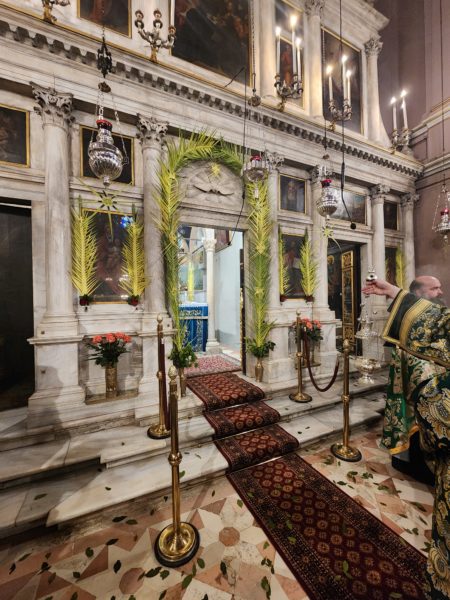 Στο Ιερό Προσκύνημα του Αγίου Σπυρίδωνος στην Κέρκυρα τελέστηκε το απόγευμα του Σαββάτου 27 Απριλίου 2024 ο Πανηγυρικός Αρχιερατικός Εσπερινός, χοροστατούντος του Θεοφιλεστάτου Επισκόπου Κοτυαίου κ. Διονυσίου, για την εορτή των Βαΐων και την ανάμνηση του υπερφυούς θαύματος με το οποίο ο Άγιος Σπυρίδων έσωσε την Κέρκυρα από την πανώλη το 1630.