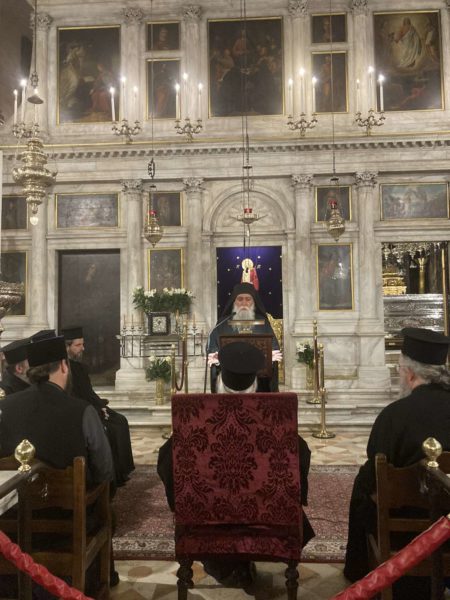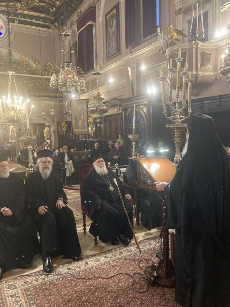 Ομιλητής, κατόπιν παρακλήσεως του Σεβασμιωτάτου, ήταν ο Αγιορείτης ιερομόναχος π. Ιλαρίων, γέροντας του Χιλανδαρινού κελλίου “Άγιος Θωμάς”. Ο π. Ιλαρίων αναφέρθηκε στις προϋποθέσεις του πνευματικού αγώνα κατά την περίοδο της Μεγάλης Τεσσαρακοστής, με αφορμή το βιβλίο της Κλίμακος του Αγίου Ιωάννου του Σιναΐτου. Η πίστη στον Χριστό, η οποία θεραπεύει τις ελλείψεις μας και μας ενισχύει, η αγάπη, η οποία γίνεται ελεημοσύνη στην πράξη, η ταπείνωση, η οποία κάνει τον άνθρωπο να εκκόπτει το ίδιον θέλημα και να εμπιστεύεται τον Θεό στους πειρασμούς κάθε μορφής, κυρίως όμως η βίωση της εκκλησιαστικής ζωής ακόμη και στην προοπτική του μαρτυρίου και της δόξας, είναι στοιχεία τα οποία ενισχύουν τον κάθε πιστό στην προσπάθειά του να ζήσει την χάρη του Θεού κατ’ αυτή την περίοδο. Με γλαφυρό τρόπο και ύφος ο γέροντας Ιλαρίων ζήτησε από όλους, είτε αισθάνονται πως πέτυχαν κάτι είτε όχι, να χαρούν αυτήν την ωραία περίοδο και να ετοιμαστούν να συνοδοιπορήσουν με τον Χριστό στον Γολγοθά, για να ζήσουμε άπαντες την ανάσταση! Ας είναι η ιδιότητα του χριστιανού το όνομά μας. Δεν είναι ο χριστιανισμός θρησκεία, αλλά πίστη. Ας έχουμε την παρουσία της Παναγίας και των αγίων ως βοήθεια και με μετάνοια και ευγνωμοσύνη στον Χριστό ας αξιωθούμε να ψάλλουμε το “Χριστός Ανέστη”!