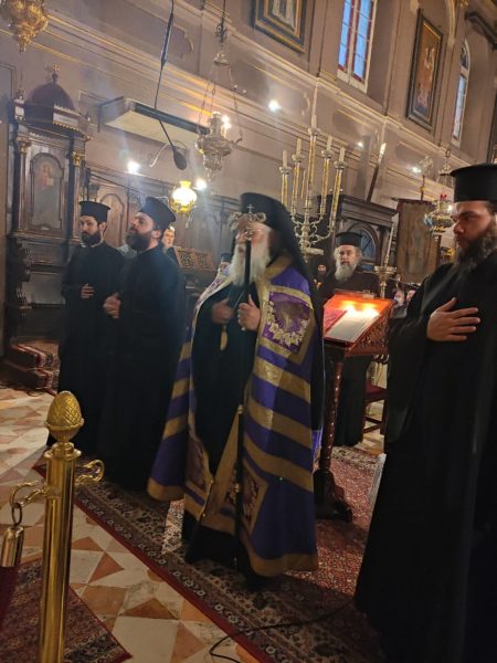 Στο τέλος της ομιλίας διάβασε την συγχωρητική ευχή προς τους ιερείς και τους πιστούς εν όψει της αγίας και μεγάλης Τεσσαρακοστής.