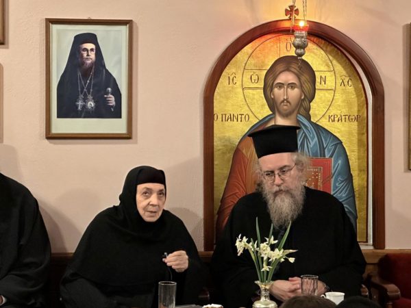Στη συνέχεια, τα παιδιά γευμάτισαν στο χωριό Καρουσάδες, με προσφορά του γεύματος από τον Αρχιερατικό Επίτροπο Βορείου Κερκύρας και προϊστάμενο του Μητροπολιτικού Ναού Υ.Ι. Σπηλαιωτίσσης Κερκύρας Πρωτ. Σπυρίδωνα Προβατά, ενώ, κατόπιν, επισκέφθηκαν την Ιερά Μονή Παντοκράτορος Αγίου Αθανασίου Αγρού, όπου συμμετείχαν στην ακολουθία του Εσπερινού και στην συνέχεια είχαν την ευλογία να ακούσουν πνευματικές νουθεσίες από την Γερόντισσα Ευφημία, καθηγουμένη της Ιεράς Μονής, η οποία παρέθεσε ωραία φιλοξενία.