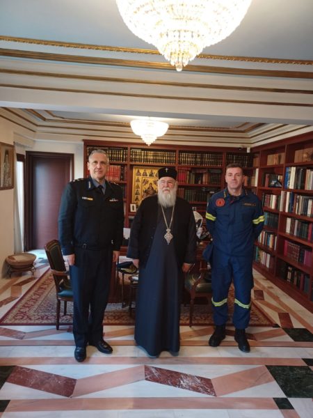 Επίσης, ο Σεβασμιώτατος κ. Νεκτάριος δέχτηκε σε εθιμοτυπική επίσκεψη τον νέο διοικητή της Περιφερειακής Πυροσβεστικής Διοίκησης Ιονίων Νήσων Αντιπύραρχο Α. Καρατζά.