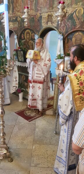 Ο Σεβασμιώτατος, απευθυνόμενος στους πιστούς τόνισε ότι οι απόστολοι μας παιδαγώγησαν εις Χριστόν. Οι απόστολοι ήταν οι φορείς της χάριτος του Αγίου Πνεύματος. Ο χαρακτήρας τους μεταμορφώθηκε, διότι πίστεψαν στον Χριστό.