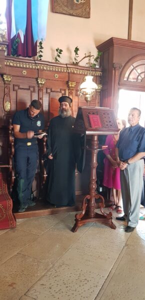 Η Θεία Λειτουργία τελέστηκε στον ιστορικό ναό των Αγίων Αποστόλων, στον περίβολο του οποίου, κατά παράδοση, βρισκόταν ο τάφος του Αγίου Γαΐου.