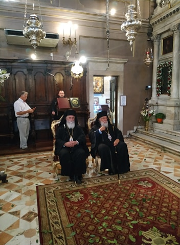 Στον Εσπερινό συγχοροστάτησαν ο Σεβασμιώτατος Μητροπολίτης Καλαβρύτων και Αιγιαλείας κ. Ιερώνυμος και ο οικείος Ποιμενάρχης Μητροπολίτης Κερκύρας, Παξών και Διαποντίων Νήσων κ. Νεκτάριος.