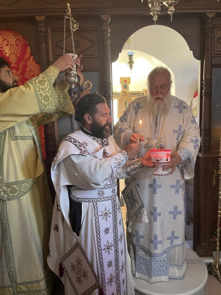 Στην σύντομη ομιλία του, ο Σεβασμιώτατος ομίλησε περί της σημασίας και την έννοια της καθιερώσεως του ιερού θυσιαστηρίου, για τους δύο αγίους οι οποίοι πλέον θα τιμώνται στον ιερό ναό, και για την έννοιαν της ασκητικής και νηπτικής ζωής, η οποία συμφιλιώνει τον πεπτωκότα άνθρωπο με τον θεό.
