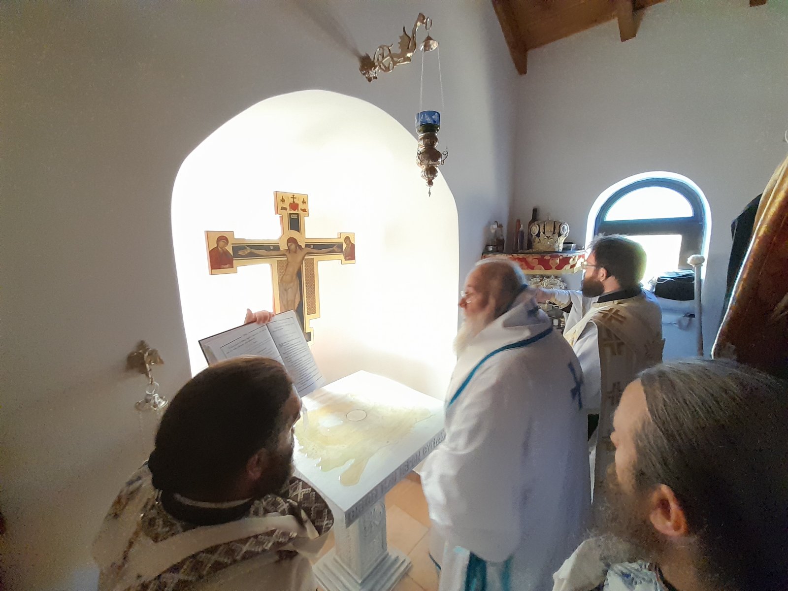 Κατά την διάρκεια των εγκαινίων, ο Σεβασμιώτατος εξηγούσε τα τελούμενα στους παρισταμένους ανθρώπους, προκειμένου να κατανοούν αυτά τα οποία τελούνται. Στη συνέχεια, μετά τον εγκαινιασμόν, τελέσθηκε και η πρώτη Θεία Λειτουργία στο νέο θυσιαστήριο.