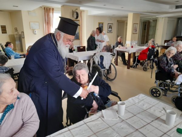 Αναστάσιμες λαμπάδες και παραδοσιακά τσουρέκια διένειμε επίσης στο Δημοτικό Γηροκομείο, αλλά και στο Καθολικό Γηροκομείο, όπου τον ανέμεναν οι τρόφιμοι για να ανταλλάξουν τις προεόρτιες πασχάλιες ευχές.