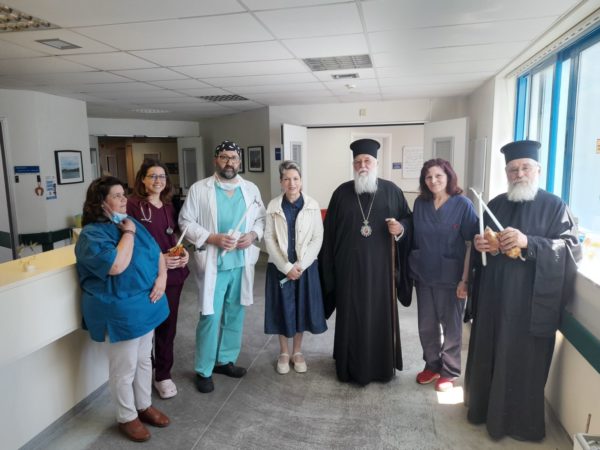 Ο Σεβασμιώτατος επισκέφθηκε τις κλινικές, μοίρασε λαμπάδες στους ασθενείς και ευχήθηκε σε όλους καλή και γρήγορη ανάρρωση και καλή Ανάσταση.
