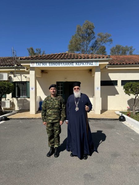 Το Πρωί της Μεγάλης Τρίτης, ο Σεβασμιώτατος επισκέφθηκε το τάγμα της εθνοφυλακής και μίλησε με τους στρατιώτες και τον Διοικητή, το Ναυτικό Σταθμο Κέρκυρας, το Λιμεναρχείο και τις αστυνομικές διοικήσεις, ευχαριστώντας τους για την καλή συνεργασία.