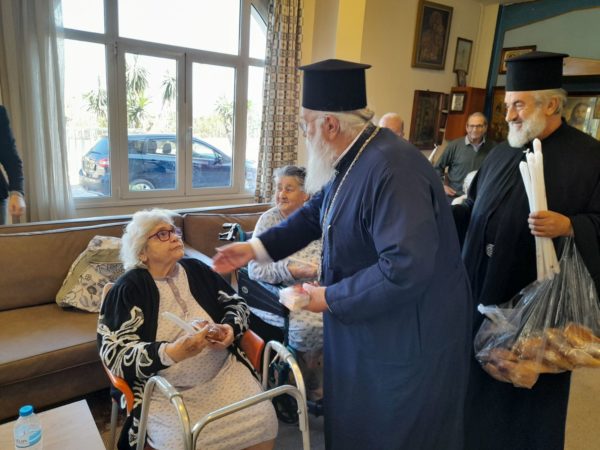 Αναστάσιμες λαμπάδες και παραδοσιακά τσουρέκια διένειμε επίσης στο Δημοτικό Γηροκομείο, αλλά και στο Καθολικό Γηροκομείο, όπου τον ανέμεναν οι τρόφιμοι για να ανταλλάξουν τις προεόρτιες πασχάλιες ευχές.
