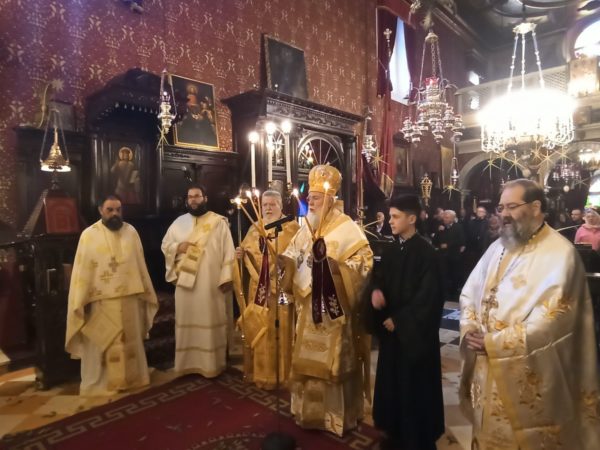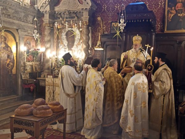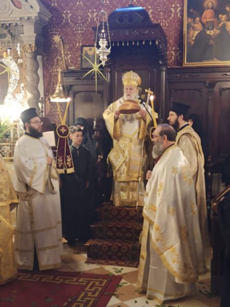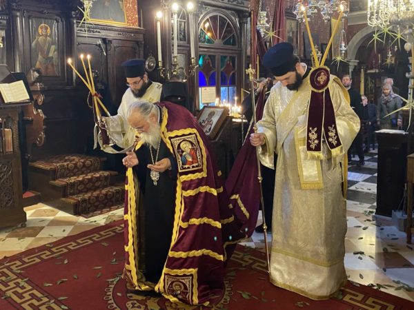 Στο τέλος της Θείας Λειτουργίας, ως έχει καθιερωθεί από πολλών ετών, έρχονται χορωδίες παιδιών, τμήματα φιλαρμονικών και κατηχητικών σχολείων στον αύλειο χώρο του ιερού Ναού, όπου τραγουδούν κάλαντα στον Σεβασμιώτατο. Ο κ. Νεκτάριος μοίρασε ευλογίες στα παιδιά και τους παρευρισκομένους.