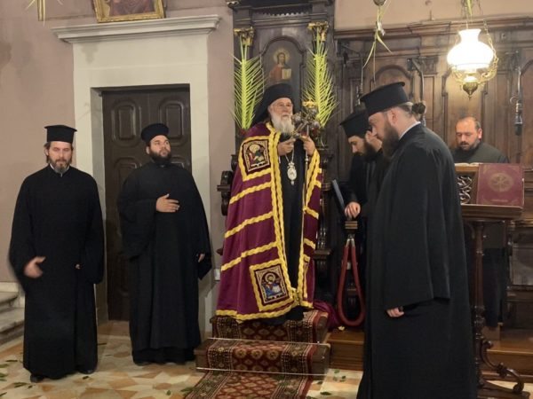 Στο τέλος ο Σεβασμιώτατος, απευθυνόμενος στους πιστούς, ομίλησε για το νόημα της εορτής της Κυριακής των Βαΐων, λέγοντας ότι, και ο προφήτης Ζαχαρίας και ο προφήτης Σοφονίας, προκήρυξαν τα γεγονότα επακριβώς, με τα οποία ο Κύριος μας εισήλθε ως Βασιλεύς ταπεινός του Ισραήλ.