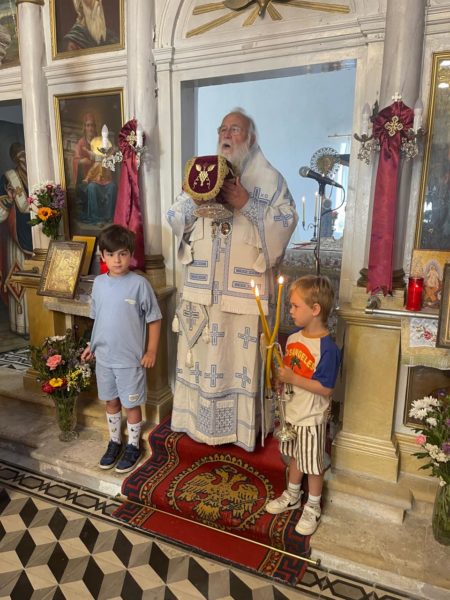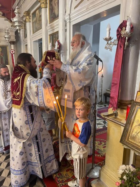 Στο τέλος, ο Σεβασμιώτατος ευχήθηκε σε όλους τους εκκλησιαζομένους, ντόπιους και παλιννοστούντας, να είμαστε ριζωμένοι στην Εκκλησία και στην αγάπη της πατρίδος μας και στην αγάπη Εκείνου και τότε, τα φαινόμενα κάθε εποχής και τα γεγονότα κάθε εποχής μόνον Εκείνη μπορεί να τα ερμηνεύσει και εμείς να αναθέτουμε δια της πίστεώς μας την ελπίδα μας στα χέρια του Θεού. Επίσης, ευχήθηκε να έχουν όλοι καλό υπόλοιπο καλοκαιριού, να έχουν καλή διαμονή και να επιστρέψουν ανεφοδιασμένοι πνευματικά και ψυχικά στην ξενιτειά.
