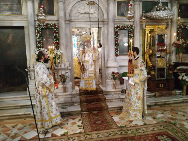 Με την τέλεση Αρχιερατικού Συλλείτουργου συνεχίστηκαν σήμερα το πρωί (Τετάρτης 12 Αυγούστου 2020) στο Ιερό Προσκύνημα του Αγίου στην Κέρκυρα οι λατρευτικές εκδηλώσεις για την ανάμνηση του θαύματος του Αγίου Σπυρίδωνος, δια του οποίου έσωσε το νησί στις 11 Αυγούστου 1716 από την πολιορκία των Τούρκων.