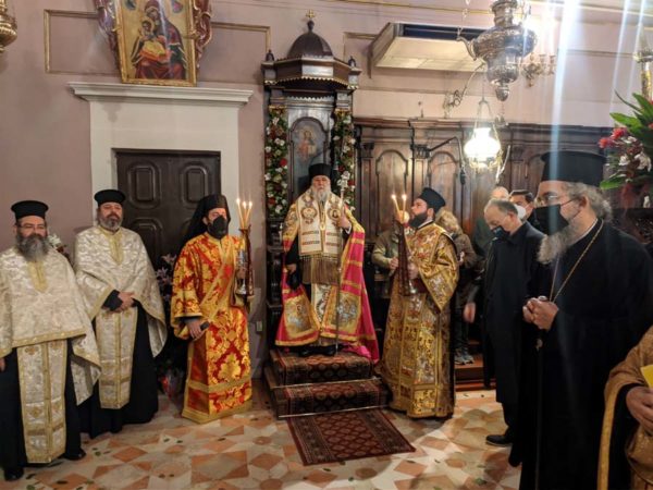 Στην ακολουθία συμμετείχε και ο Σεβασμιώτατος Μητροπολίτης Μαυροβουνίου και Παραθαλασσίας εκ του Πατριαρχείου της Σερβίας κ. Ιωαννίκιος, ενώ έξω από τις πλάγιες θύρες του ναού παιάνισαν η Παλαιά Φιλαρμονική και η Φιλαρμονική “ΜΑΝΤΖΑΡΟΣ”, στα πλαίσια της τήρησης των μέτρων προστασίας της δημόσιας υγείας.