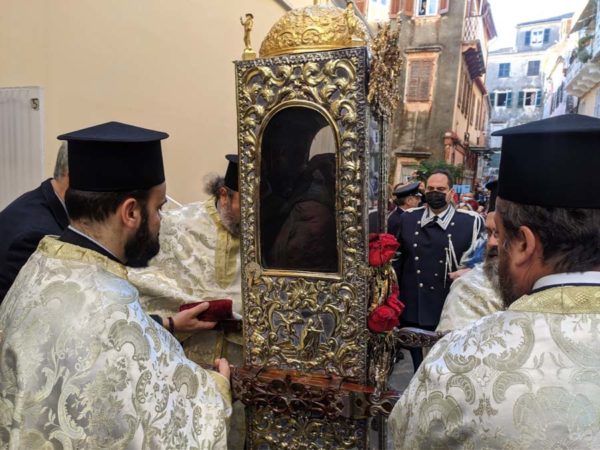 Ολοκληρώθηκαν οι λατρευτικές εκδηλώσεις για την μνήμη του προστάτου της Κέρκυρας Αγίου Σπυρίδωνος το απόγευμα της Δευτέρας 13 Δεκεμβρίου 2021 στο Ιερό Προσκύνημα με την Παράκληση στον Άγιο και τα «μπάσματα», δηλαδή την επανατοποθέτηση του ιερού λειψάνου στην λάρνακα.