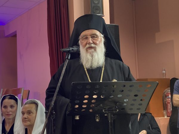 Ομιλία προς τιμήν του Σεβασμιωτάτου, στην οποία περιέγραψε τον ηγετικό ρόλο του επισκόπου, αλλά και την ανάγκη για συμπόρευση με κλήρο, λαό και τους άρχοντες του τόπου, όπως επίσης και στοιχεία από την προσωπική τους γνωριμία, απηύθυνε ο Γενικός Αρχιερατικός Επίτροπος και στενός συνεργάτης του Μητροπολίτη Πρωτοπρεσβύτερος π. Θεμιστοκλής Μουρτζανός.