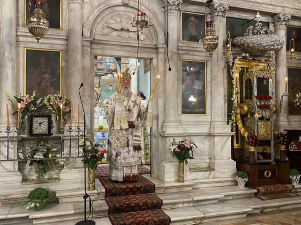Σήμερα λοιπόν το πρωί, τελέστηκε η Θεία Λειτουργία, ιερουργούντος του Σεβασμιωτάτου Μητροπολίτου Κερκύρας, Παξών, και Διαποντίων Νήσων κ. Νεκταρίου, ο οποίος στην ομιλία του, αναφέρθηκε στο ζήτημα του νού και της καρδίας των ανθρώπων. Έλαβε αφορμή από το αποστολικό ανάγνωσμα της ημέρας, συγκεκριμένα στην προς Ρωμαίους επιστολή, και ανεφέρθη ότι εάν στη διάρκεια της ημέρας φρονούμε μόνο τα του Χριστού, ζούμε μόνο για το Χριστό. Και εάν φρονούμε άλλα εκτός του Χριστού, τότε δε ζούμε για τον Χριστό, αλλά ζούμε για το εγώ μας. Το αυτό λέγει ο Απόστολος Παύλος, εάν τρώμε το ψωμί μας για τη δόξα του Χριστού, τότε ο Χριστός ευλογεί τη ζωή μας, και εάν τρώμε προς ικανοποίηση, τότε απέχει η καρδιά μας από την παρουσία του Θεού στη ζωή μας. Επίσης, η ζωή και η ανάστασις είναι χάρισμα, δωρεά του Ιησού Χριστού στον καθένα μας, όμως έρχεται ο Απόστολος Παύλος και λέγει, «Είτε ζώμεν είτε αποθνήσκομεν του Κυρίου εσμέν».