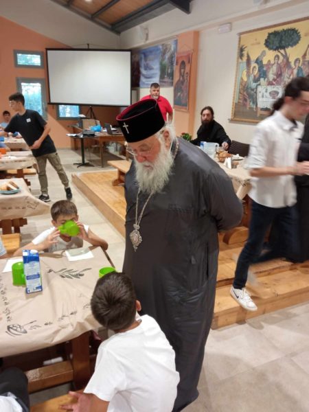 Ο Σεβασμιώτατος παρακολούθησε όλο το πρόγραμμα, τέλεσε τον εσπερινό του Σαββάτου, και είχε την ευκαιρία να μιλήσει και να επικοινωνήσει με τα παιδιά στις ανάλογες δραστηριότητες του προγράμματος.