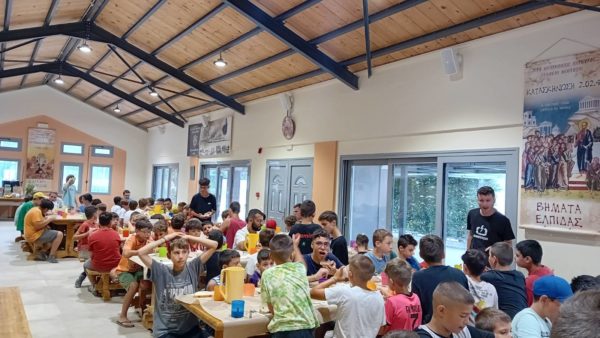 Σ αυτή την περίοδο φιλοξενούνται 120 κατασκηνωτές και στελέχη.